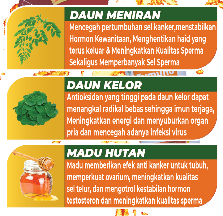 *Direkomendasikan untuk yang sulit hamil karena haid tidak normal, keputihan, kistamiom, Lipoma dan Mau Program Hamil (Dikonsumsi Dengan Pasangan)